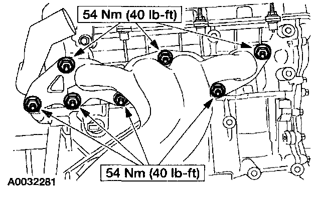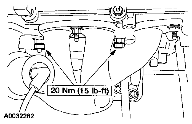 2. Install the exhaust manifold and the nuts.