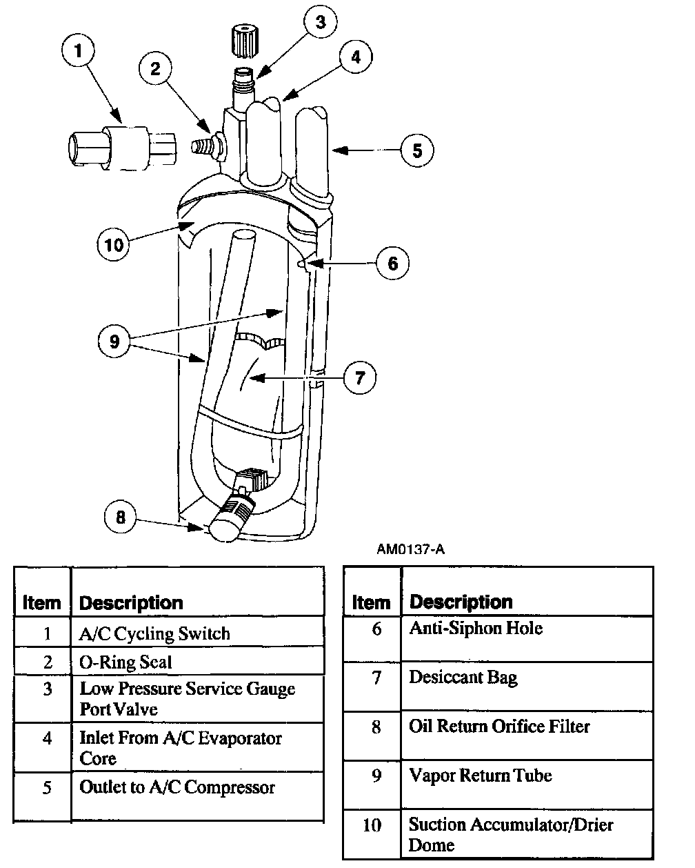 As the heavier mixture passes through the small diameter liquid bleed hole, it has a second chance to vaporize and recirculate through the A/C compressor without causing compressor damage due to slugging.