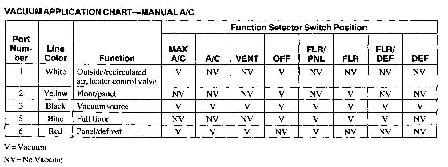 Vacuum Application Chart - Manual A/C: