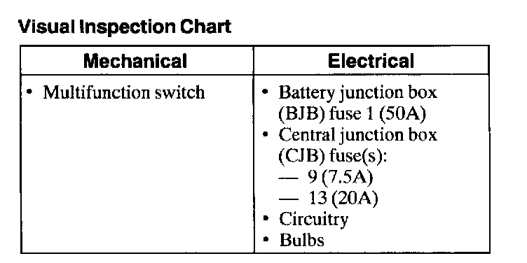1. Verify the customer concern by operating the system.Visual Inspection Chart: