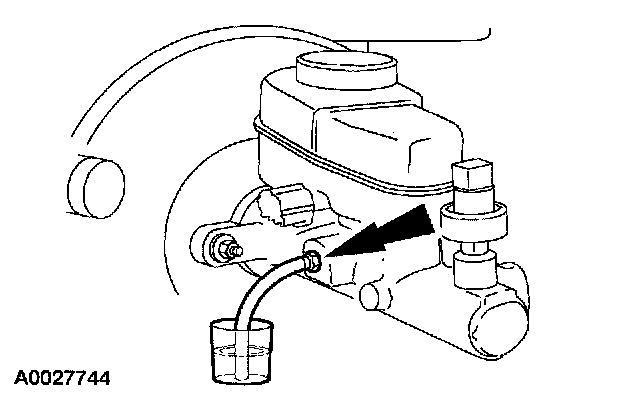 Loosen the master cylinder bleeder screw until brake fluid flows out of the drain tube.