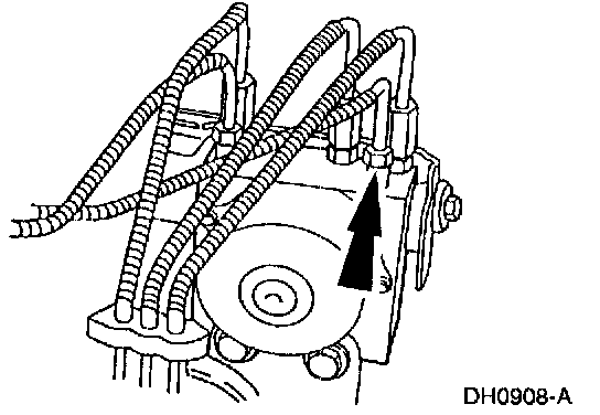10. Loosen a brake outlet tube at the 4WABS hydraulic control unit (HCU).