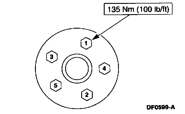 5. CAUTION: Failure to tighten the lug nuts in a star pattern can result in high brake disc runout, which will speed up the development of brake roughness, shudder and vibration.
