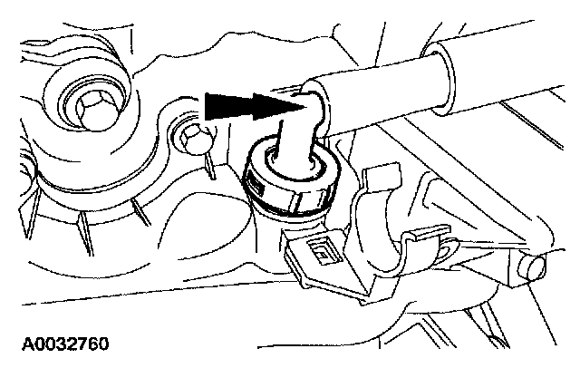 3. Disconnect the coolant bypass hose from the routing clip.