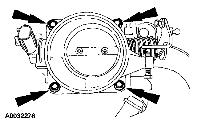 6. Remove the bolts and the throttle body.