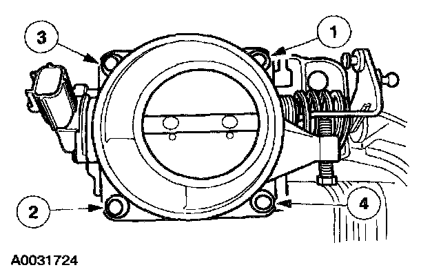 ^ Tighten the throttle body bolts in the sequence shown to 10 Nm (89 Lb-In).