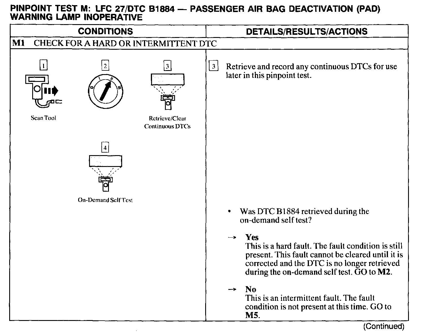 PINPOINT TEST M: LFC 27/DTC B1884 - PASSENGER AIR BAG DEACTIVATION (PAD) WARNING LAMP INOPERATIVEM1: