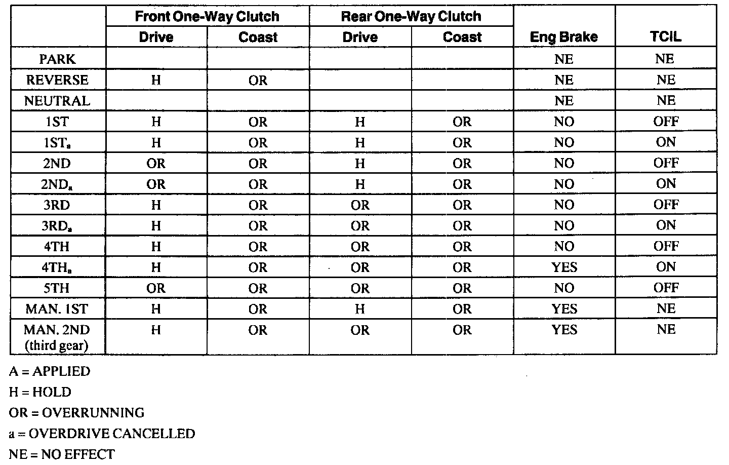 Band/Clutch Application Chart