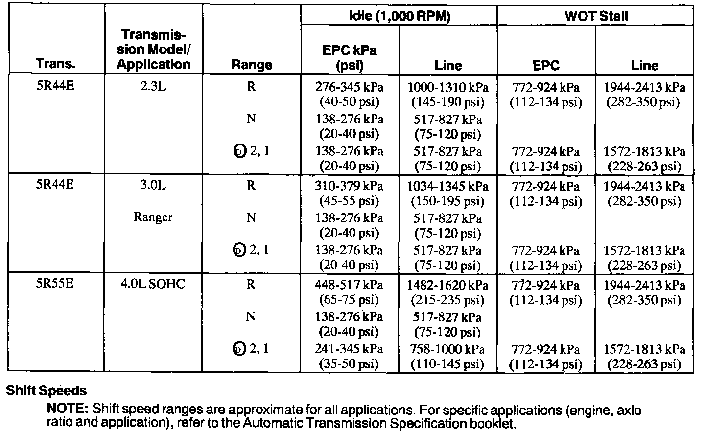 NOTE: Shift speed ranges are approximate for all applications.