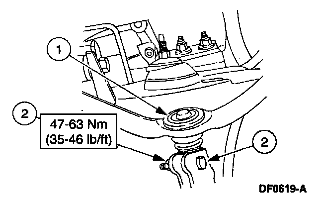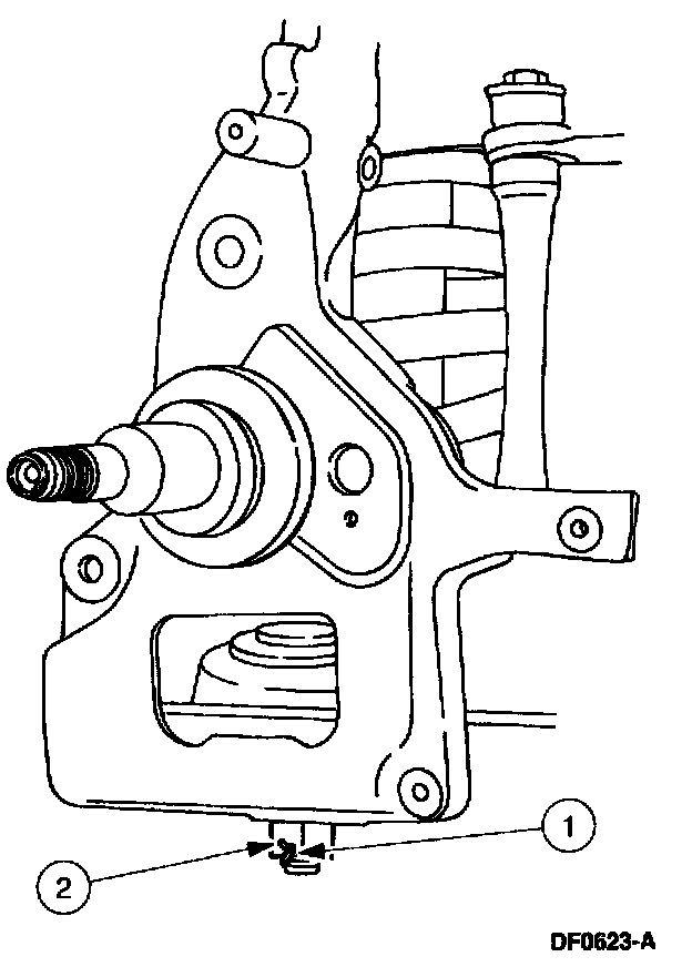 1. CAUTION: Always install the cotter pin into the lower ball joint castellated nut from outboard to inboard, with the fingers bent together at a right angle. Failure to do so will result in damage to the wheel and tire assembly.