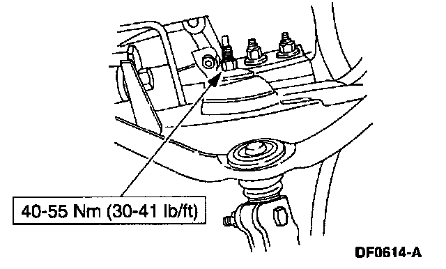 6. Remove the upper ball joint retaining nut and pinch bolt.