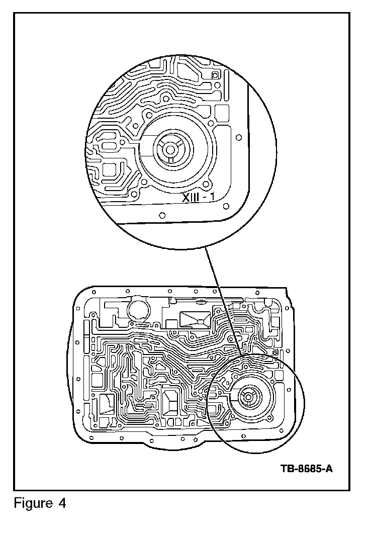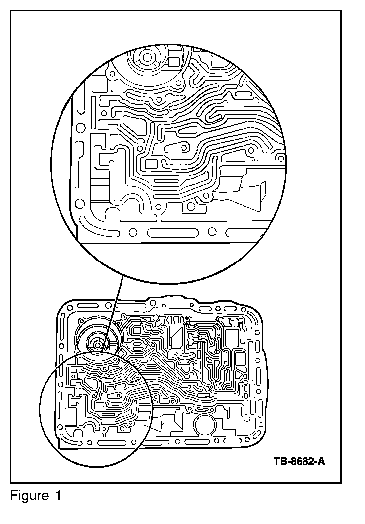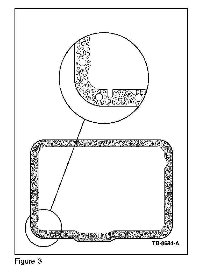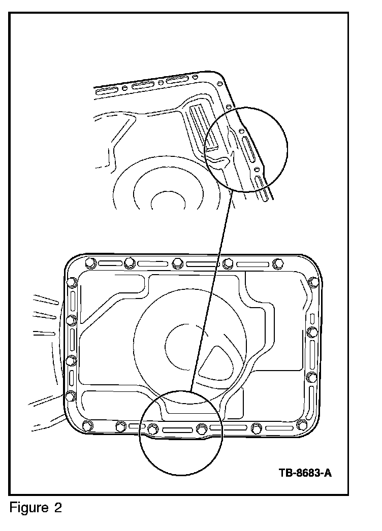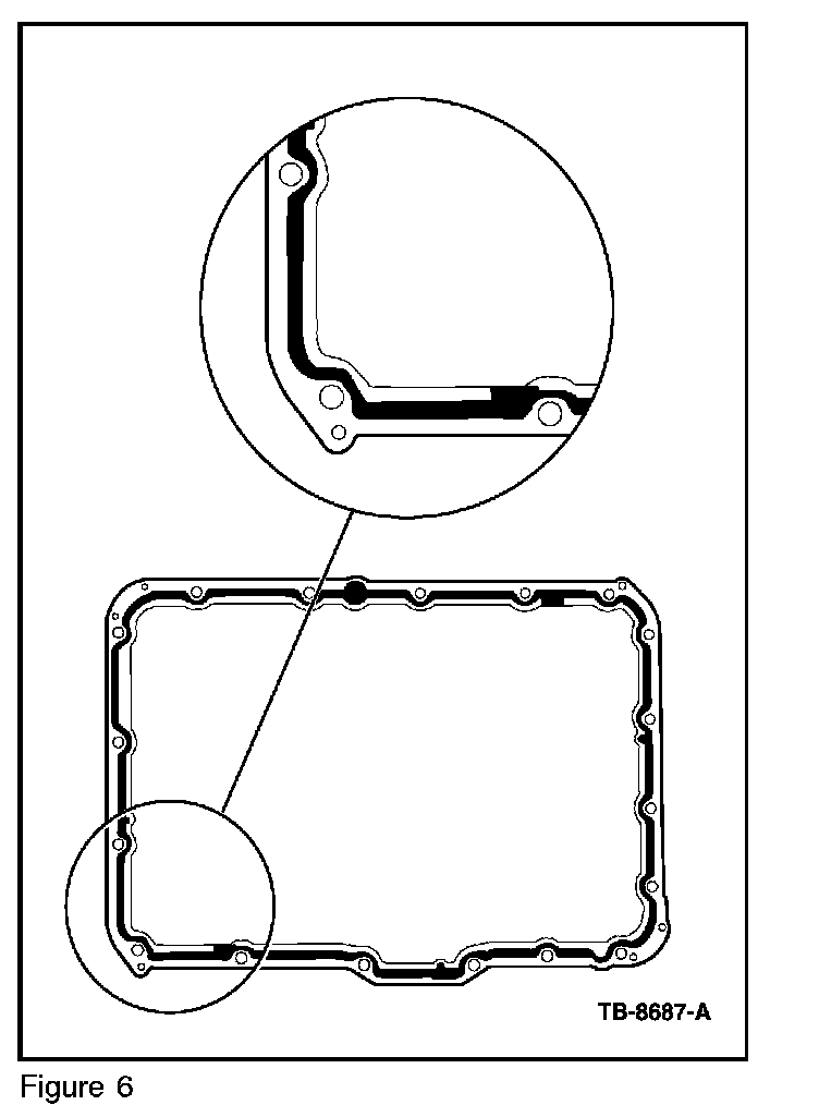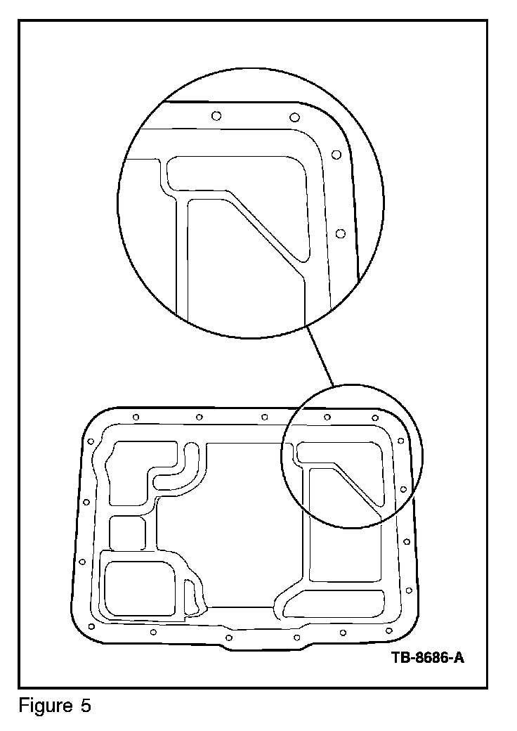 For 1997-2007 (early production) 4R44E I 5R44E and 5R55E when servicing the fluid pan gasket (7A191), the fluid pan (7A194) or the case (7005) do not mix and match old level and new level parts. The old level gasket, refer to Figure 3 (7A191) will be continued for past model applications. If replacing the older design level case, refer to Figure 1 (7005) and/or old lever fluid pan, refer to Figure 2 (7A194), ALL new components must be used. This includes the case (7005), refer to Figure 4, fluid pan (7A194), refer to Figure 5, fluid pan gasket (7A191), refer to Figure 6 and pan screws (W500212) (new torque specification - 7 lb-ft (10 N.m) refer to Figure 7.