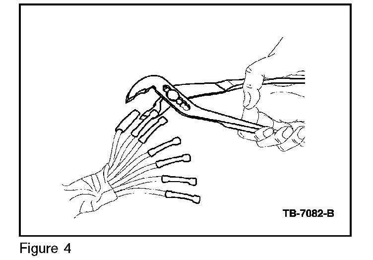 3. Use a shielded, flameless heat gun to heat the repair area until the tubing shrinks and adhesive flows out of both ends of the shrink tubing. While the adhesive is still hot, use pliers to pinch the ends of the heat shrink tubing closed to form a moisture proof seal (Figure 4).