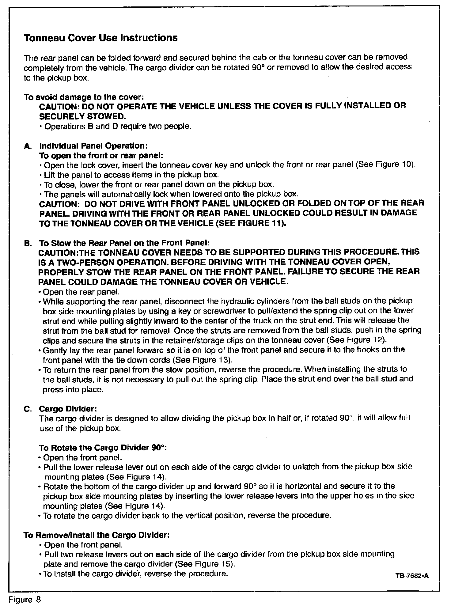FIGURES 8 THROUGH 15 OF THIS ARTICLE MAY BE DETACHED AND PROVIDED TO THE CUSTOMER, TO AID IN THE PROPER OPERATION OF THE TONNEAU COVER.