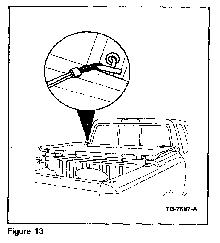 Inspect all Tonneau Cover support struts and determine the area of damage. The entire support strut assembly should not be replaced unless it is broken or bent. Broken upper or lower support strut ends can be replaced separately. The center-mounting bracket ball studs and the upper bracket & ball stud assemblies are also serviced as separate components.