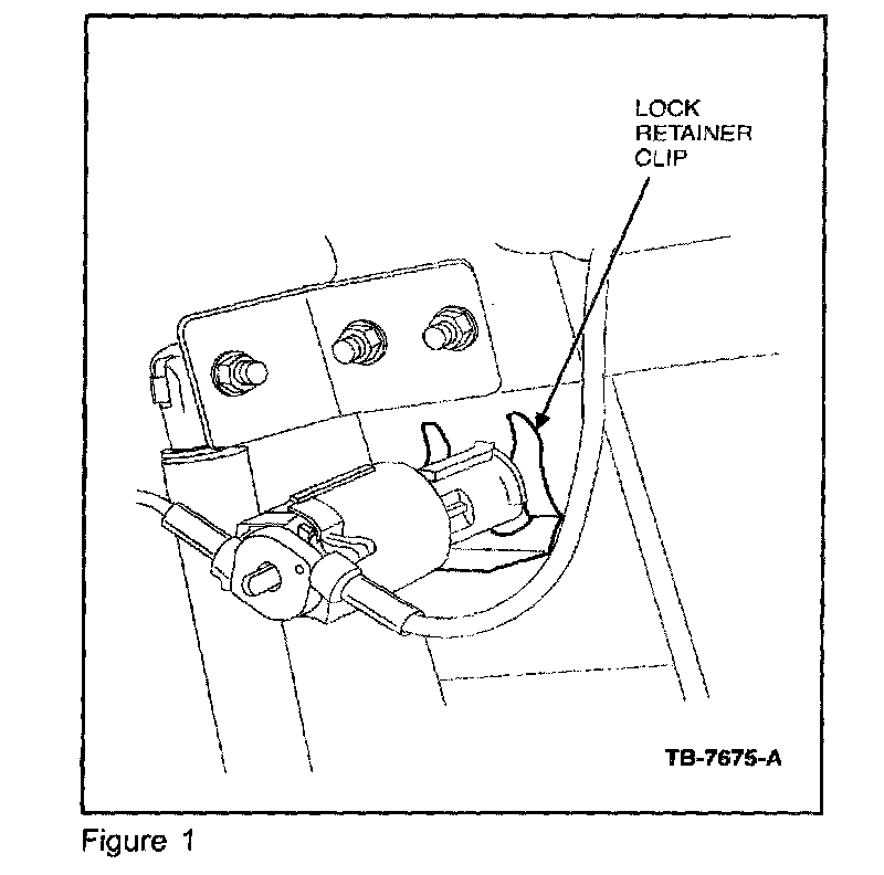 1. Lift up Tonneau Cover and check for lock retainer clip (Figure 1). If the lock retainer clip is not damaged and is properly in place, proceed to Step 2. If the lock retainer clip is missing or damaged replace with new and recheck for normal operation. If corrected, return the vehicle to the customer. If not, proceed to Step 2.
