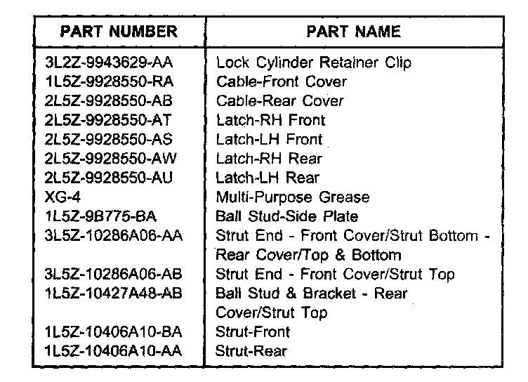 Some 2001-2003 Ranger vehicles equipped with a Hard Tonneau Cover may exhibit inoperable Latches, Locks and/or Lift Struts.