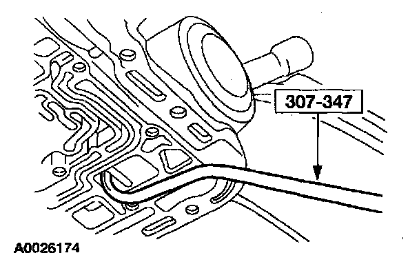 - Insert the special tool into the transmission case, locate on servo rod, and remove the front band servo cover, servo piston and servo piston spring.