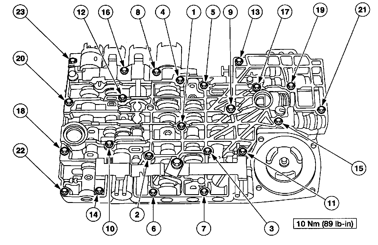 - Tighten the transmission fluid pan screws in a crisscross sequence.