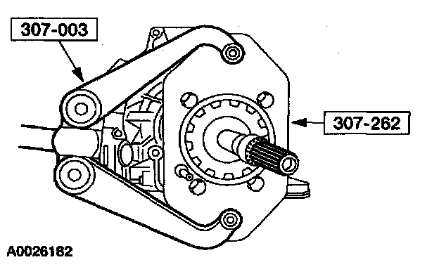 132. CAUTION: The splines of the input shaft are not the same length on both ends. The shaft end with the shorter splines goes into the fluid pump.