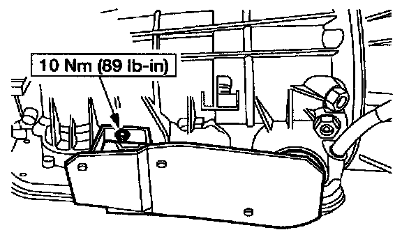 129. If equipped, install transmission servo heat shield and nut.