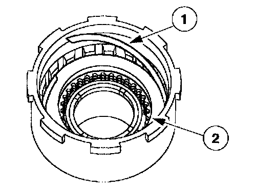 2. Install the original direct clutch retaining ring on the direct clutch disc pack.