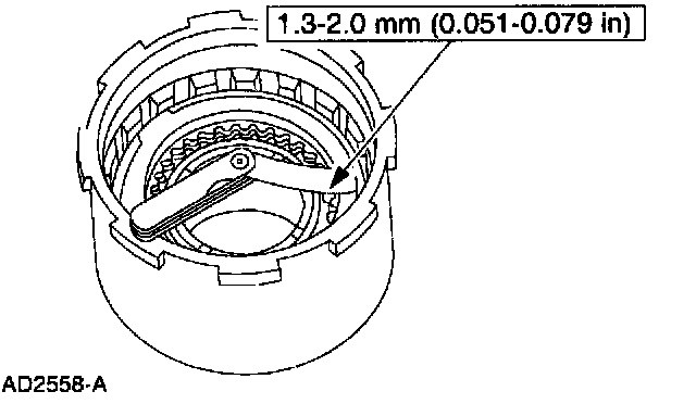 - If specifications do not match, use a select fit direct clutch retaining ring to match specifications and verify with a feeler gauge.
