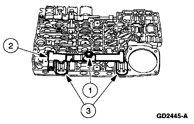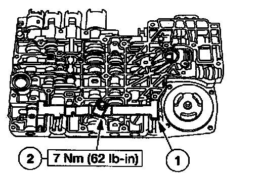 2. CAUTION: The torque converter clutch solenoid (TCC) solenoid may pop out of its bore. This may damage the solenoid.