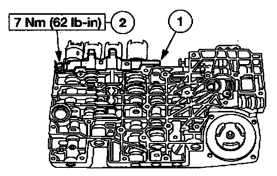 NOTE: If the TCC valve came out during disassembly, use caution when installing the torque converter clutch solenoid.