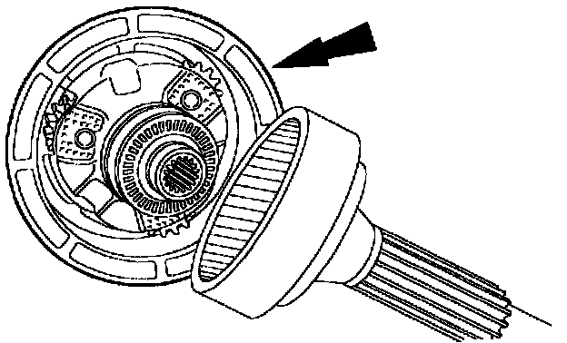 2. Install the overdrive planetary gear carrier into the center shaft and front ring gear.