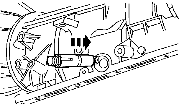 3. CAUTION: Use care not to damage the fluid pan rail surface when installing the retaining pin.