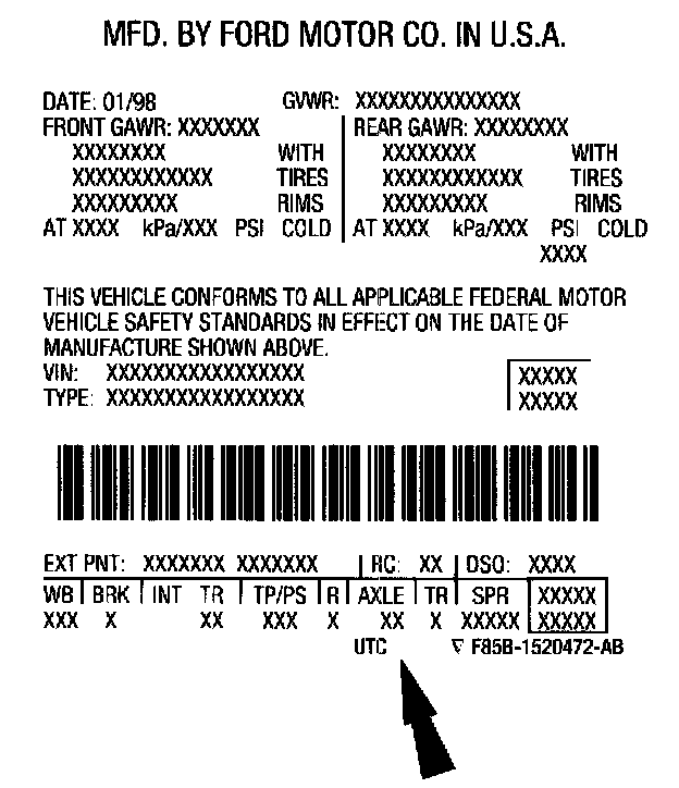 The vehicle certification (VC) label is located in the driver door jamb. The first two digits of the axle code indicate the rear axle and the third digit refers to the front axle, if so equipped.