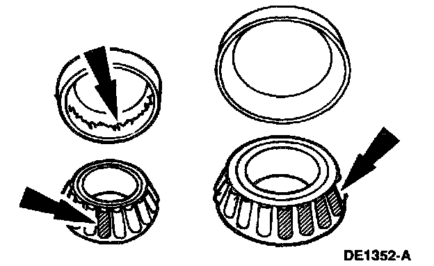 A wheel bearing noise can be mistaken for a pinion bearing noise. On 4x2 vehicles, check the wheel bearing for a spelled cup, and spelled/damaged rollers. Install a new wheel bearing if any of these concerns are detected.