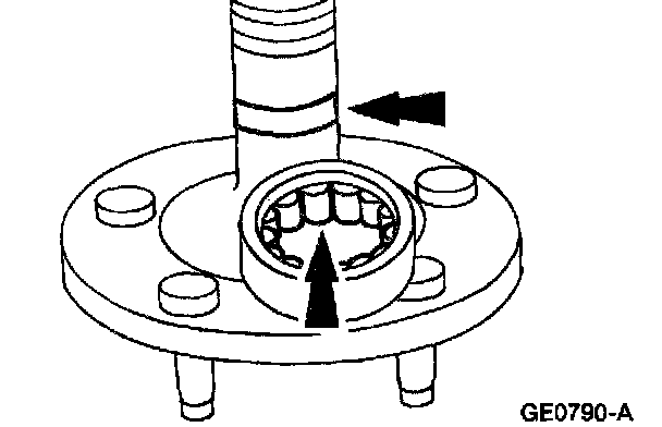 If the wheel bearing is damaged, the roller surface on the axle shaft may also be damaged. Install a new axle shaft if any damage is detected.