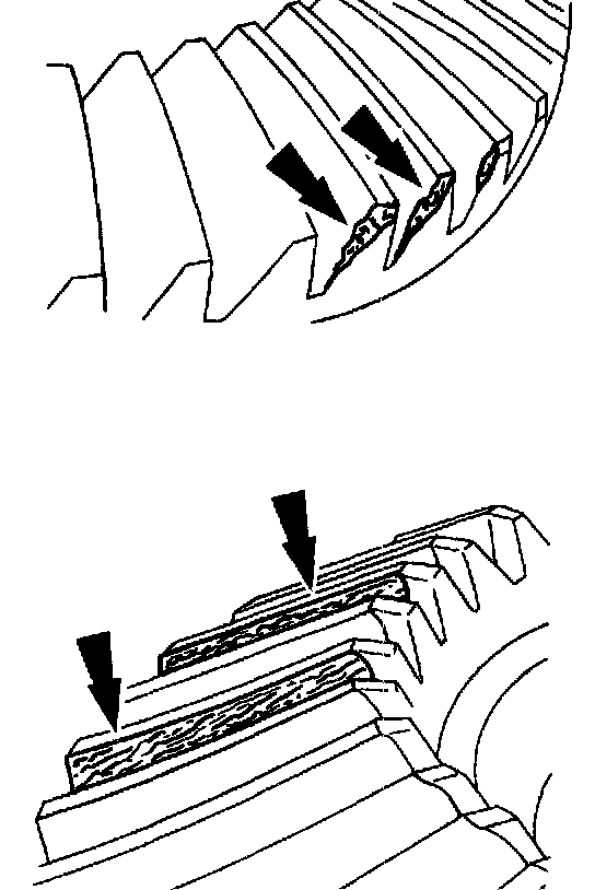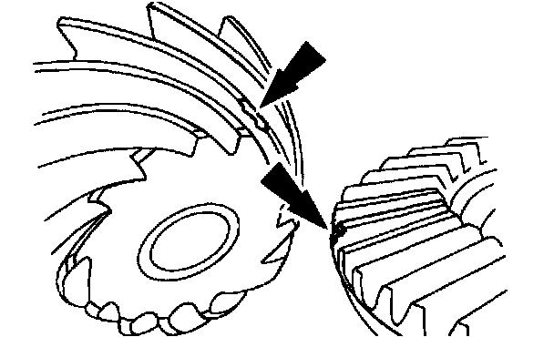 To check the ring gear and pinion, remove as much lubricant as possible from the gears with clean solvent. Wipe the gears dry or blow them dry with compressed air. Look for scored or damaged teeth. Also look for cracks or other damage.
