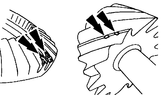 Clean the gear tooth nick or ridge with a small grinding wheel. If the damaged area is larger than 3.2 mm (1/8 inch), install a new gearset.
