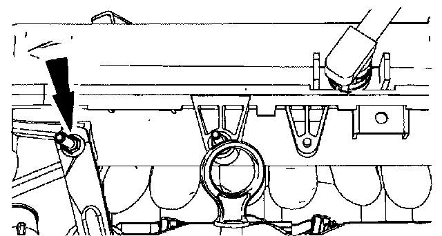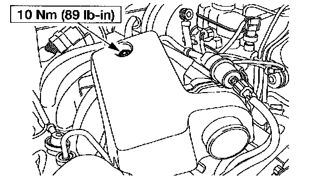10. Remove the nut and the upper intake manifold support brace.