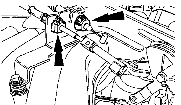 5. Disconnect the accelerator cable and speed control cable from the accelerator bracket.