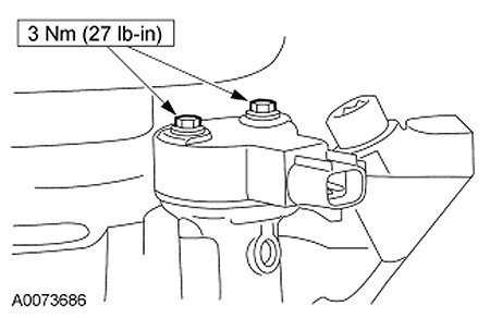 CAUTION: After installation, do not loosen the synchronizer bolt and rotate the synchronizer assembly. The synchronizer assembly is not adjustable. Do not loosen the synchronizer bolt after the alignment tool has been removed in order to align the CMP electrical connector for any reason. If the electrical connector is not in the correct position, the synchronizer assembly must be removed, the alignment tool and the assembly reinstalled if the engine has not been rotated from top dead center (TDC) of the compression stroke on the No. 1 cylinder.
