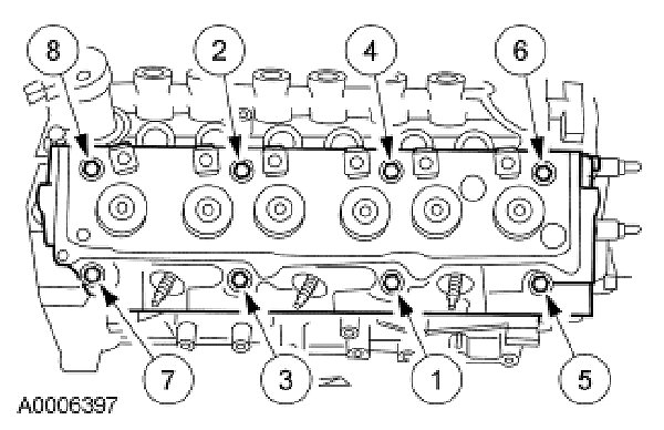 - Tighten the bolts in five stages in the sequence shown.