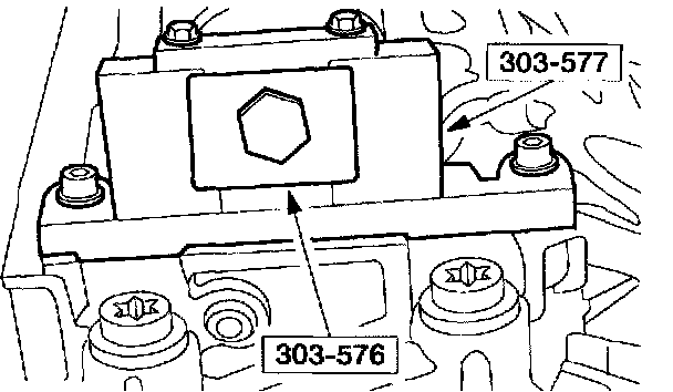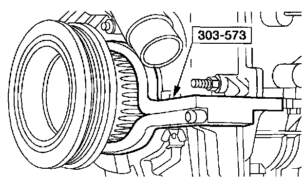8. NOTE: The special tool must be installed on the damper and should contact the engine block, this positions the engine at Top Dead Center (TDC).