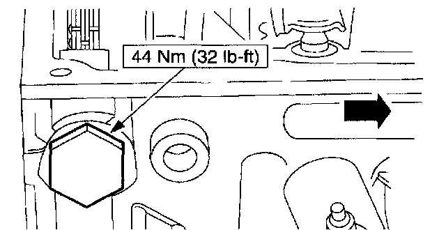 27. Install the special tools on the front of the LH cylinder head and tighten the top two clamp bolts to 10 Nm (89 inch lbs.).