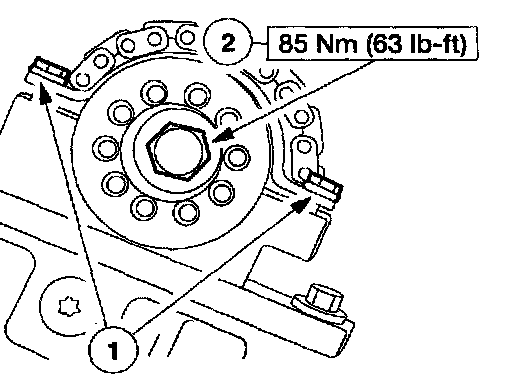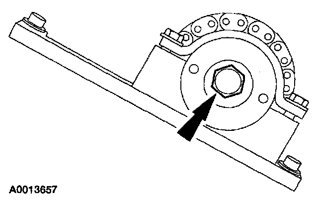 9. CAUTION: The right-hand camshaft sprocket bolt is a left-hand threaded bolt.
