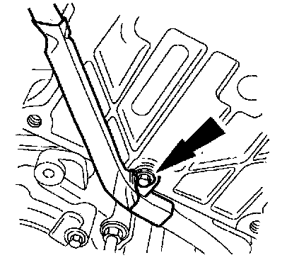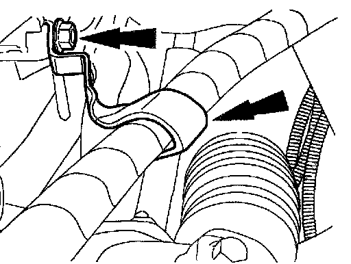 5. On A/C equipped vehicles, install the A/C line bracket and bolt.