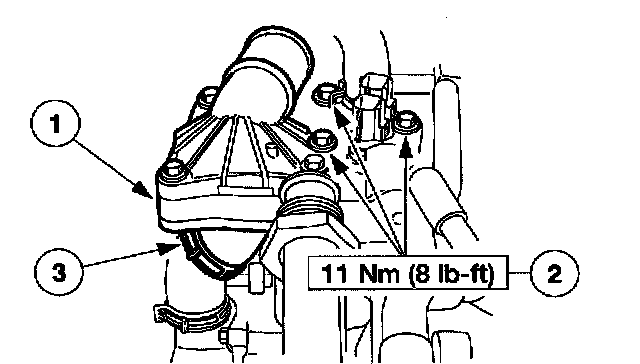 8. Install the thermostat housing.