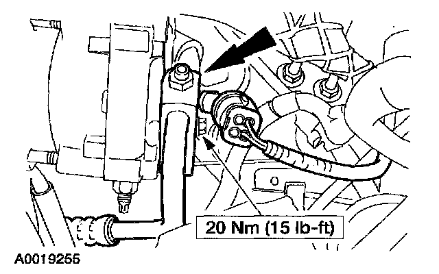6. Loosen the bolt and disconnect the compressor manifold and tube assembly from the A/C compressor.