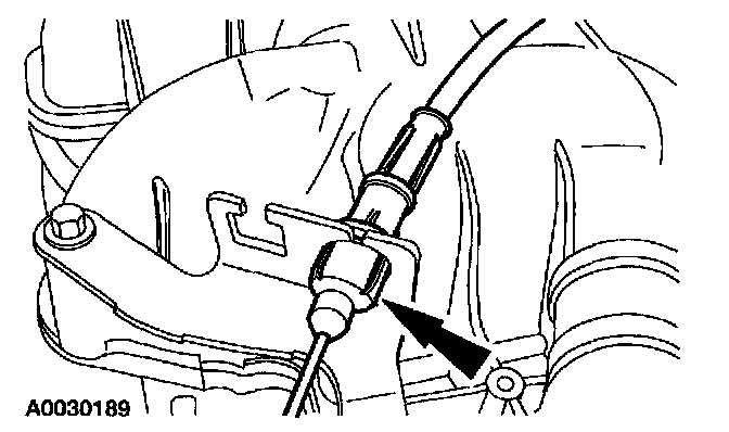 3. Depress the tabs and remove the accelerator cable from the accelerator cable bracket.