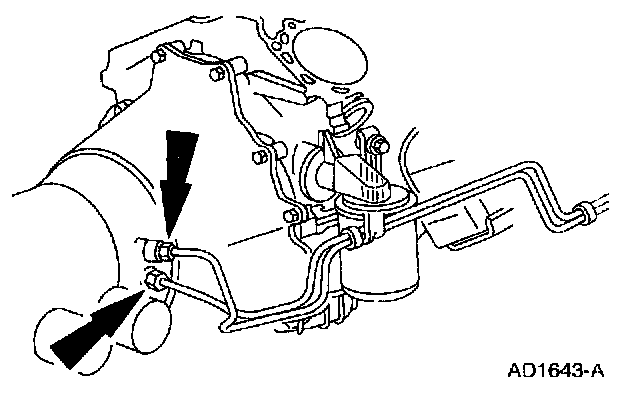 3. Disconnect the fluid cooler inlet tube and the fluid cooler tube and the fluid cooler tube from the transmission.