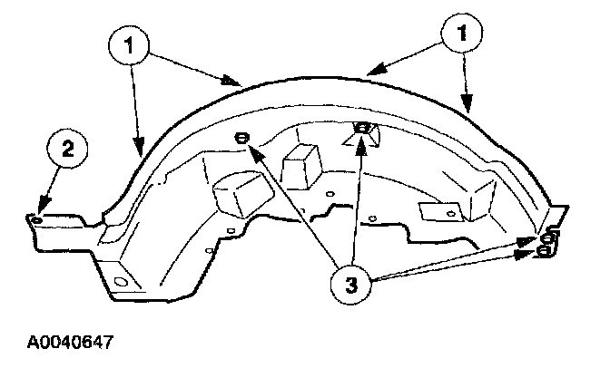 ^ Remove the electrical connector locators from the splash shield prior to removal.