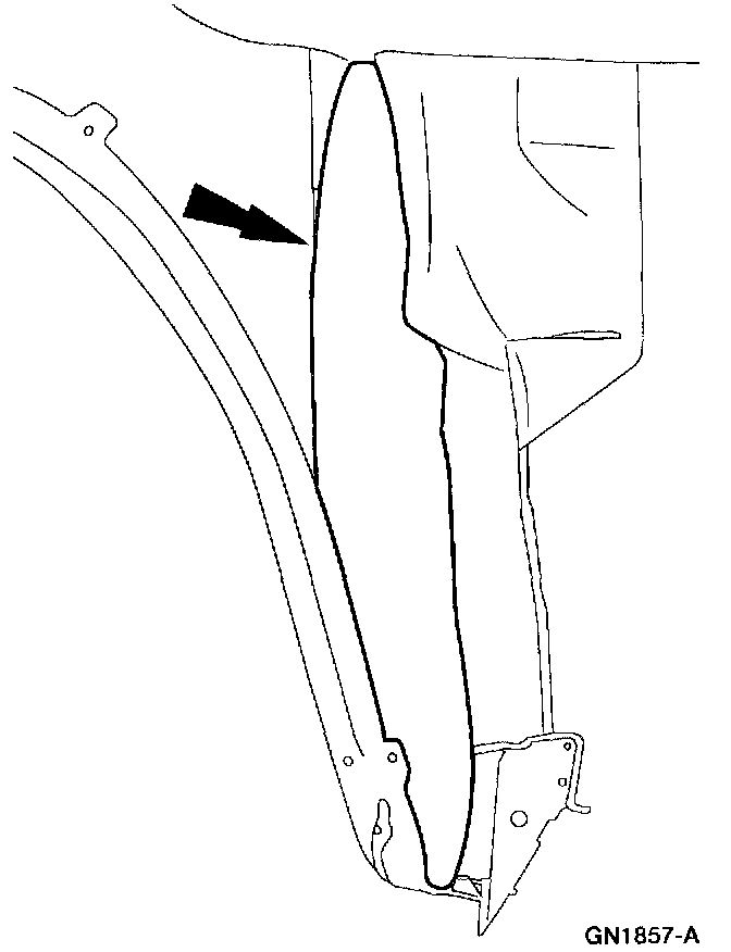 6. Remove the lower front fender to rocker panel bolt.